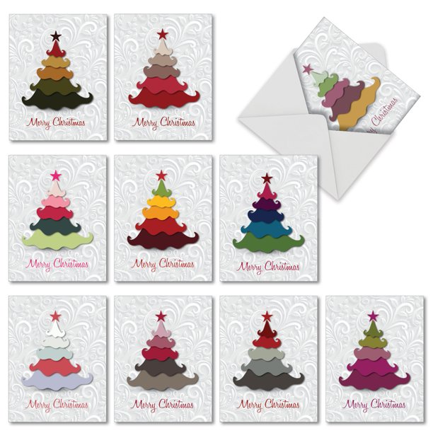 Non Photo Christmas Cards - M2939xsb Holiday Hues 10 Assorted Merry Christmas Cards Featuring Graphic Christmas Tree Image In Bright Non Traditional Holiday Colors On A Swirl Background With Envelopes By The Best Card Company Walmart Com